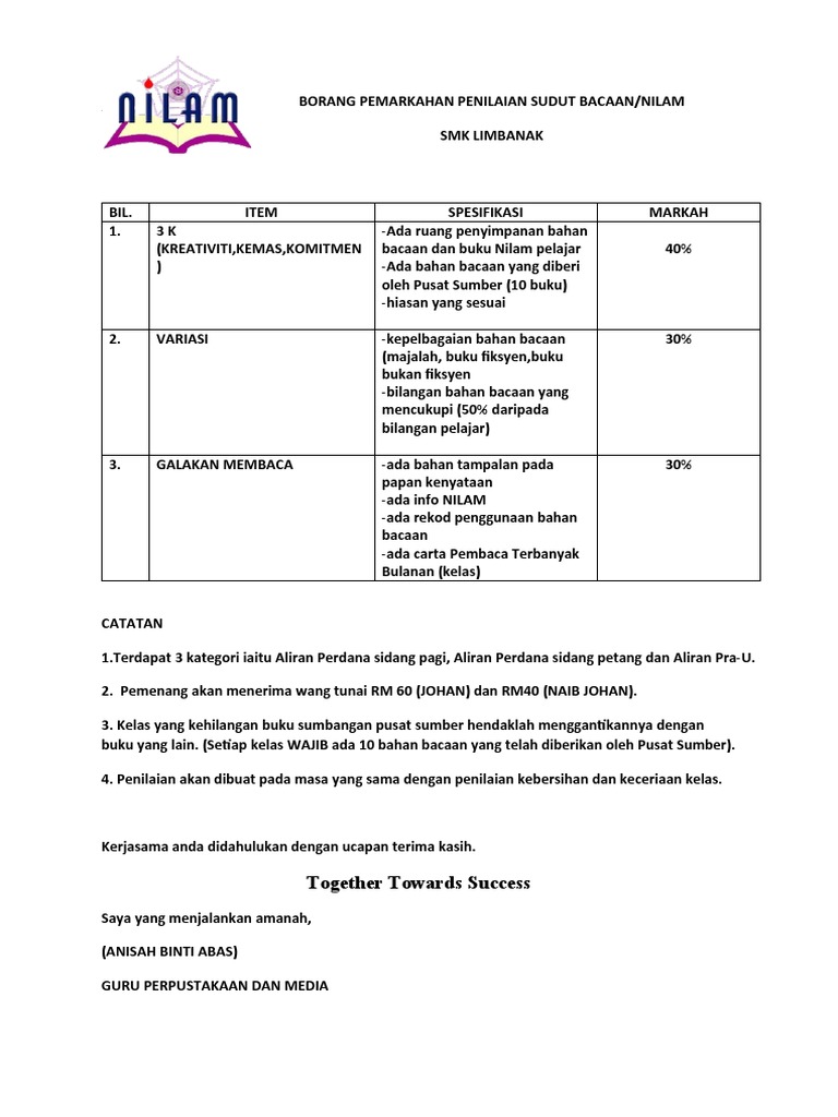 Ahli Jawatankuasa Pertandingan Sudut Bacaan Pengerusi. Lokasi PPS induk Bilik Media BBM Lokasi PSS. Mengaktifkan semula sudut bacaan NILAM kelas.